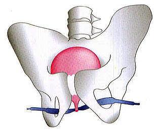 内臓の下垂などにより、上方から骨盤に圧力がかかると、その圧力は
