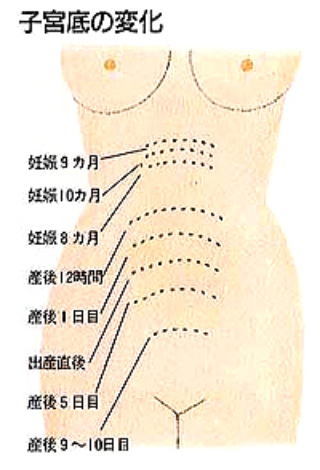 そしてまた、出産後、通常なら図のように時間の経過とともに下がって来るはずの内臓腹膜は上に上がったままになり、それが産後のお母さんの身体の様々な症状の根底に関わってくるのです。