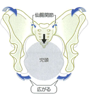 正常の骨盤であれば、このように赤ちゃんの頭が下降すると共に骨盤が広がり、通過しやすくなります。